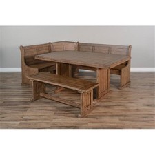 The Pemberly Row Breakfast Nook Set has been skillfully crafted with mahogany wood that accentuate its beauty. The versatile storage benches are reversible to fit any space's style and function. Finish: Buckskin - Taupe brown.